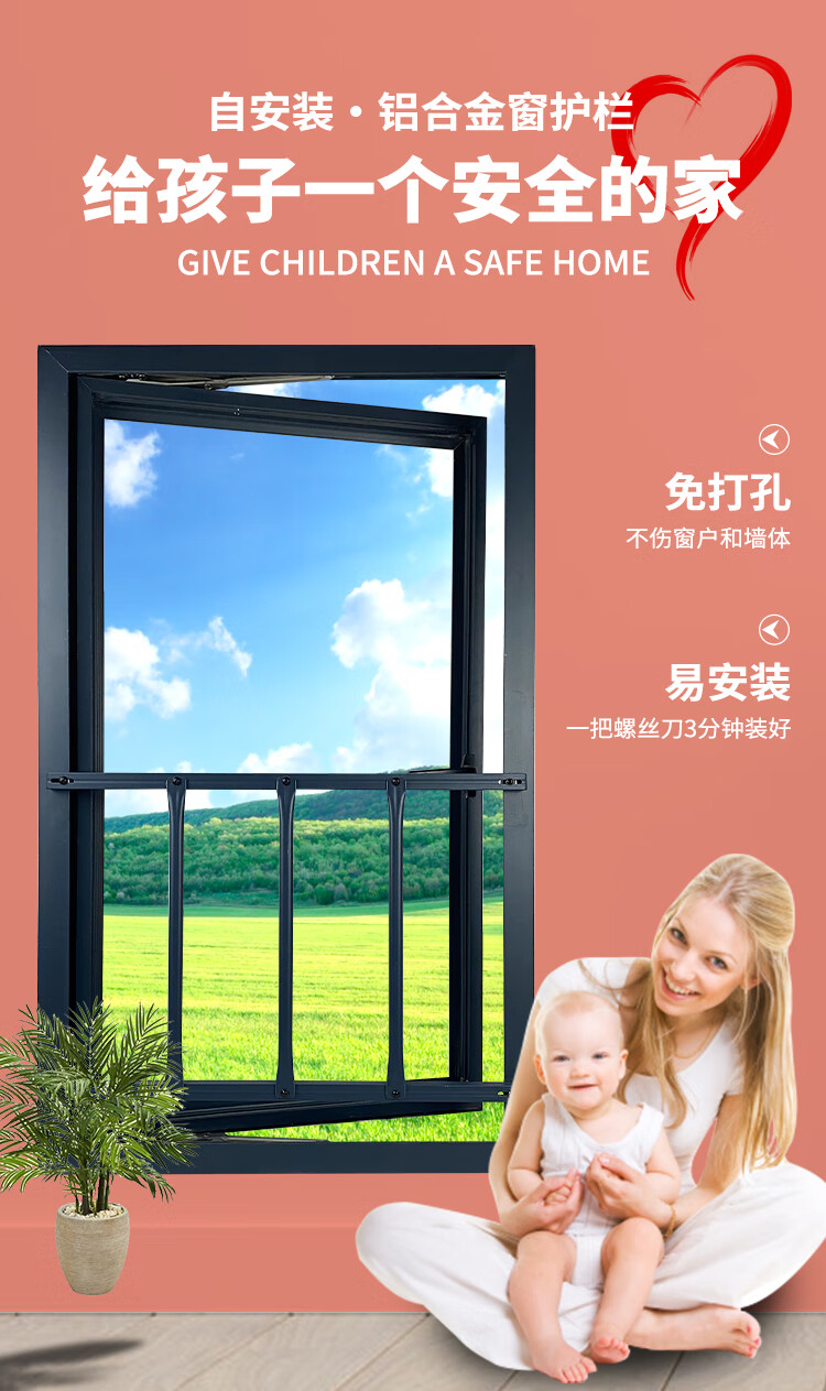 Open the window, open the window, open the window, safety window bars, high-rise protective children's safety, self installed window gate, no punching installation, safety milk white customization: width 30-40cm/half [image price brand quotation]-