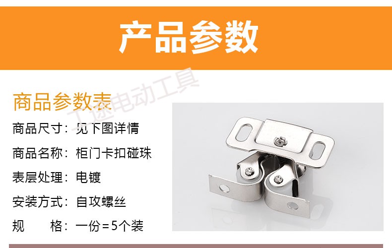Gongtu [Set of 5] Wardrobe Cabinet Door Snapper Anti opening Spring Snap Snap Beads Old style Cabinet Door Closure Baby Safety locks [Set of 5] Bright Silver [Image Price Brand Quote]-