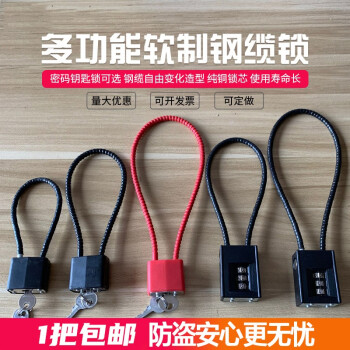 Multifunctional soft lock steel wire rope padlock cabinet sub long padlock steel wire lock anti-theft helmet lock password steel cable padlock 20cm [red] steel cable lock 2 keys [picture price brand quotation]-