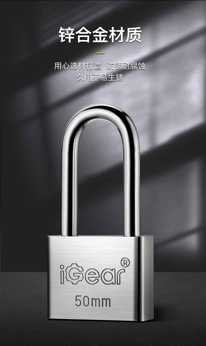 [iGear Long Beam Padlock 50mm] iGear Padlock Waterproof and Rustproof Home Long Beam Padlock Dormitory Extension Cabinet Door Lock Window Gate Lock Water Meter Box Lock 50mm JG-100-50 [Quote Price Evaluation]-
