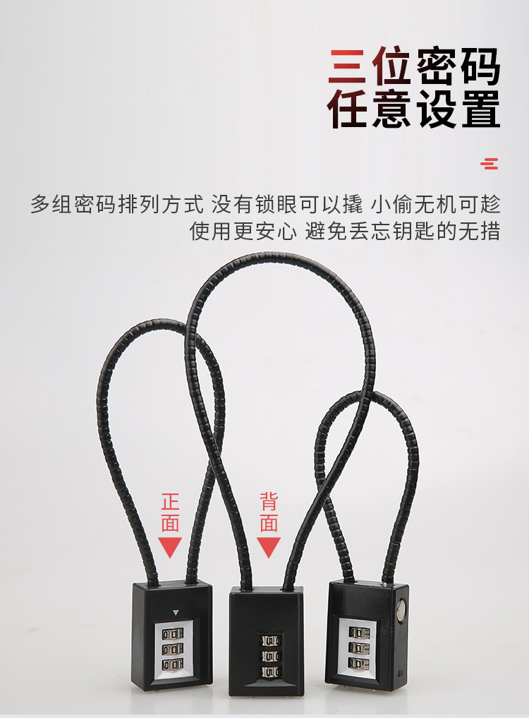 Worker's multi-functional soft lock, wire rope padlock, cabinet sub long padlock, wire lock, anti-theft helmet lock, password, wire rope padlock, 38cm (black), wire rope password lock