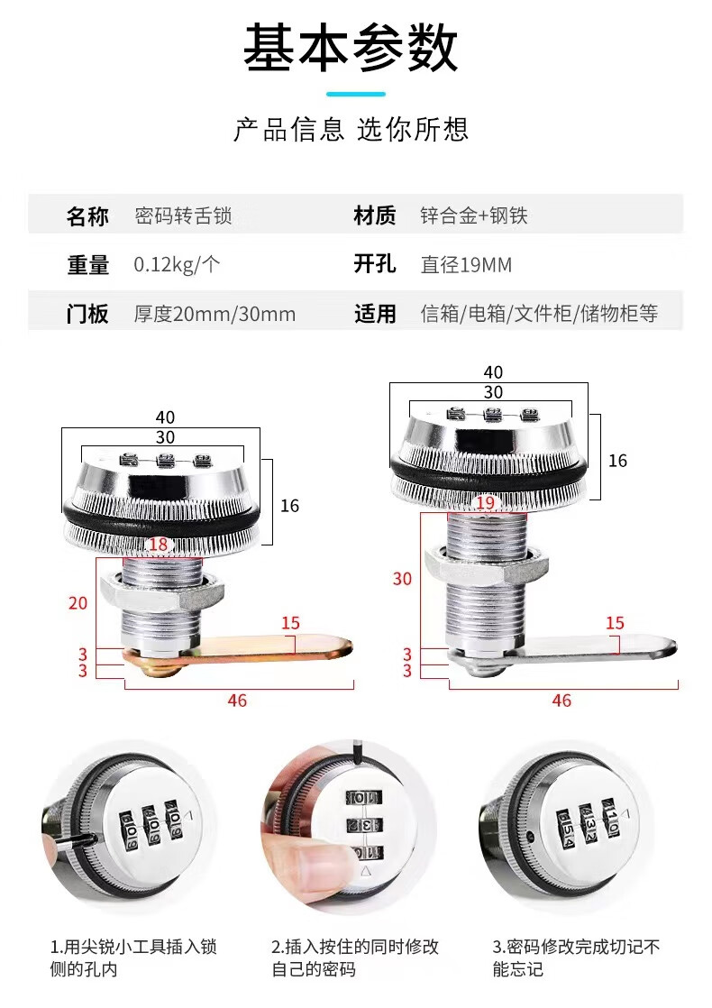 Bamboo cabinet password lock Zinc alloy password tongue lock Mechanical password lock Changing cabinet sub dial Cupboard locks Mailbox lock Silver 20mm 5-piece set Customized by enterprise