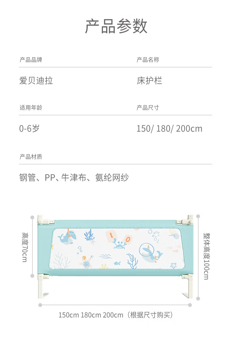 AIBEDILA bed rail baby fall prevention safety baby and child bed cover with extra wide side to prevent falling, single side three height increase [separate lifting] Star Dream Travel [thickened tube] 2 1.8m bed (1.8+2m) with 3D filling cotton [pictur...