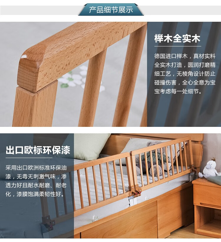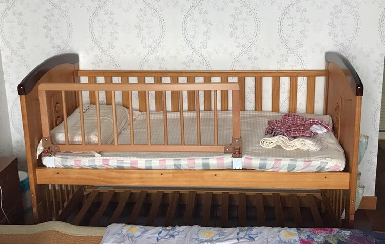 Shennadu bed rail elderly bed rail elderly bed railConvertible Crib fence solid wood bed railPortablebed rail pole baby single piece length 88 high 32 natural wood color safety with a height of 10 cm bracket