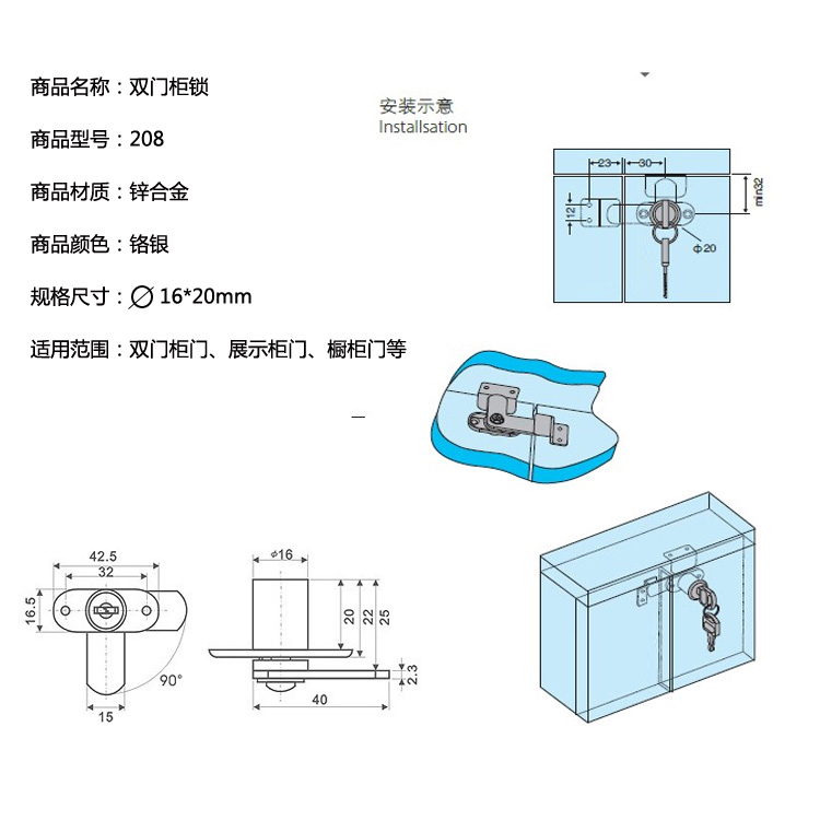 Guqing drawer cabinet lock, double door cabinet lock, furniture sliding door lock, double door cabinet lock, file cabinet lock