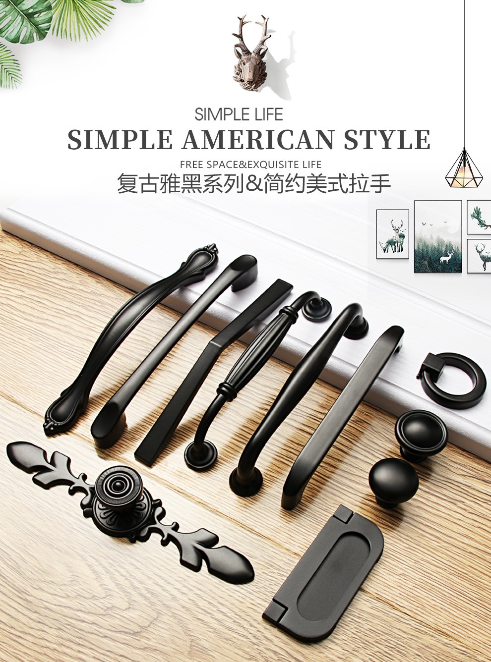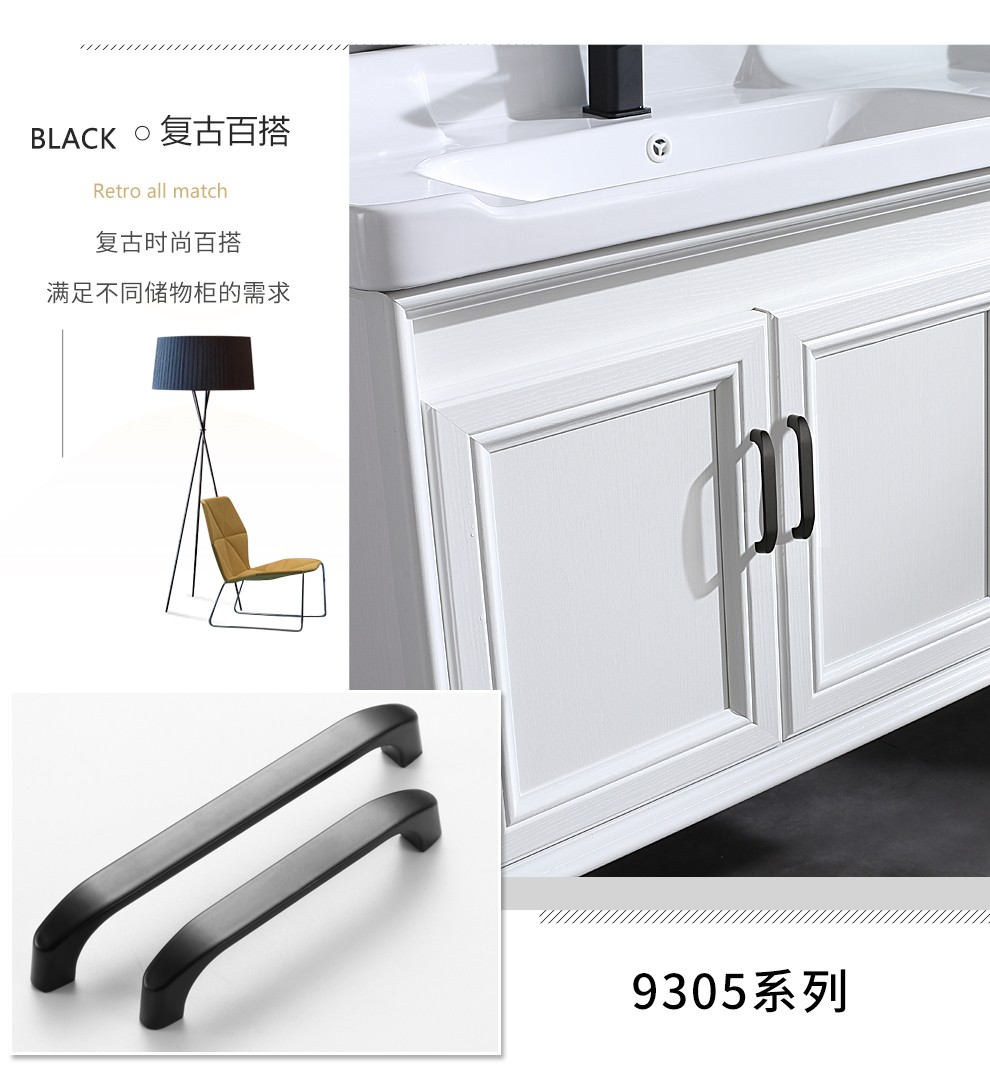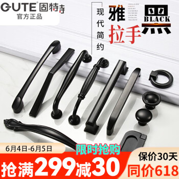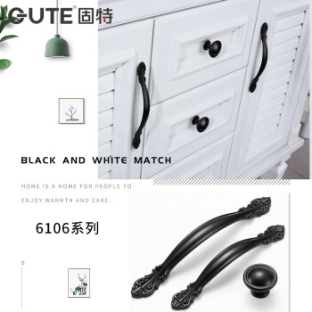 GUTE Handle Cabinet Door Drawer Cabinet American Black Handle Wardrobe Door Handle Modern Simple European Classic Handle Hardware Solid Thickened 9300-64mm [Image Price Brand Quotation]-