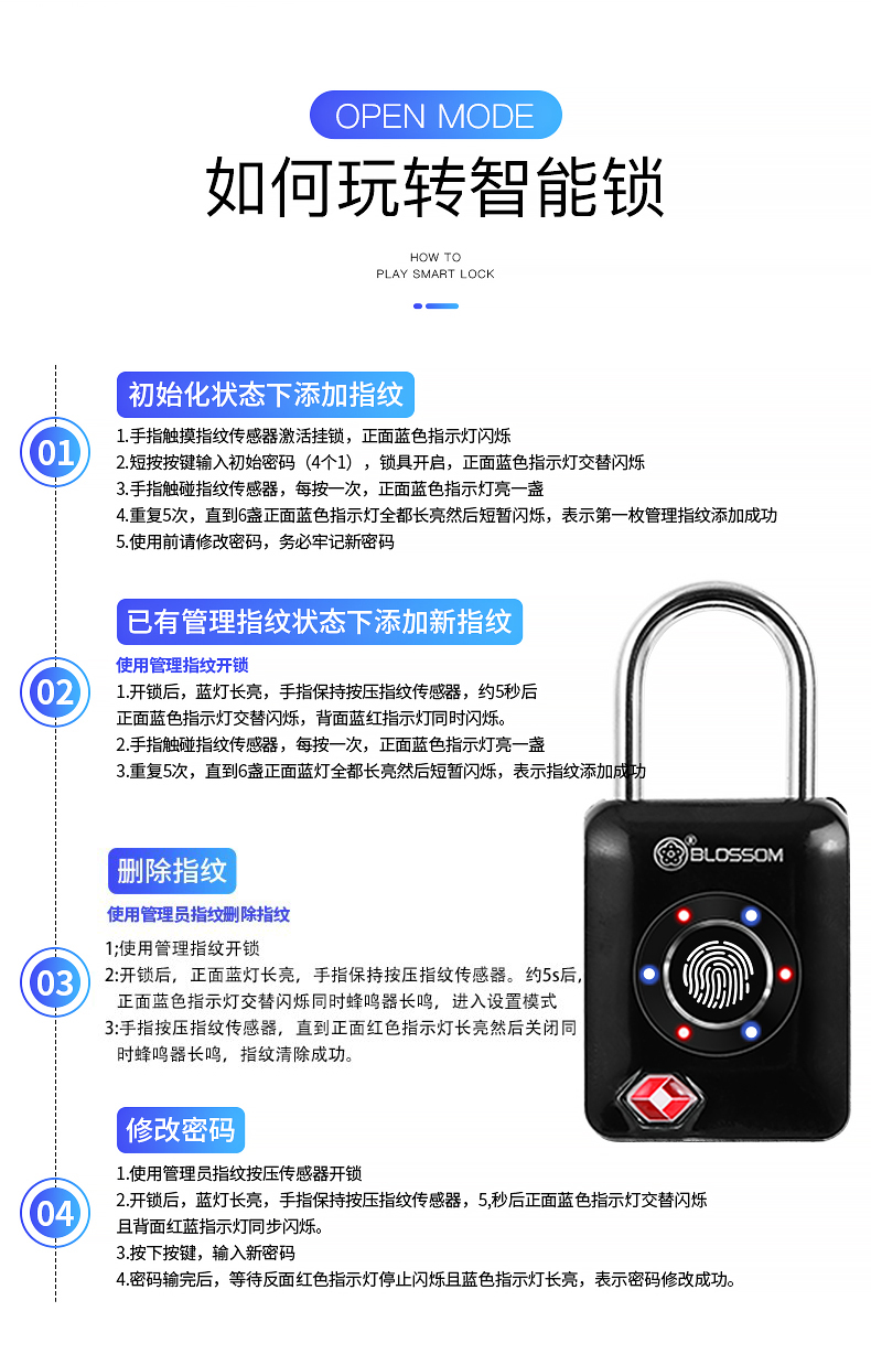 BLOSSOM padlock fingerprint lock Combination lock TSA overseas travel luggage lock gym file cabinet lock Cupboard locks