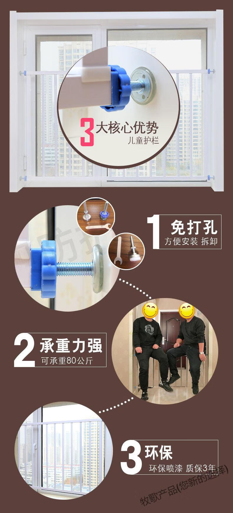 Window security bars, children's windows, safety, bay windows, high-rise floor to ceiling balconies, extra wide, non perforated indoor household widths, and heights can be customized. Please contact customer service for pricing [image price, brand qu...