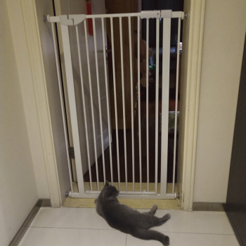 Runpet hole free adjustable anti pet cat dog gate fence tallswingingdoorsafety bar household indoor increase encryption small and medium-sized dog anti jump height 150 cm Automatic door good for cat blocking door width 97