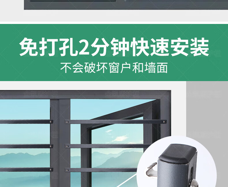 Wenzhi Window Aluminum Alloy Safety Pole Balcony Flat Opening Non punching Children's Safety Self installation Anti drop Net Invisible Window Gate 2.0 Thickened/Width 61-70 cm [Image Price Brand Quotation]-
