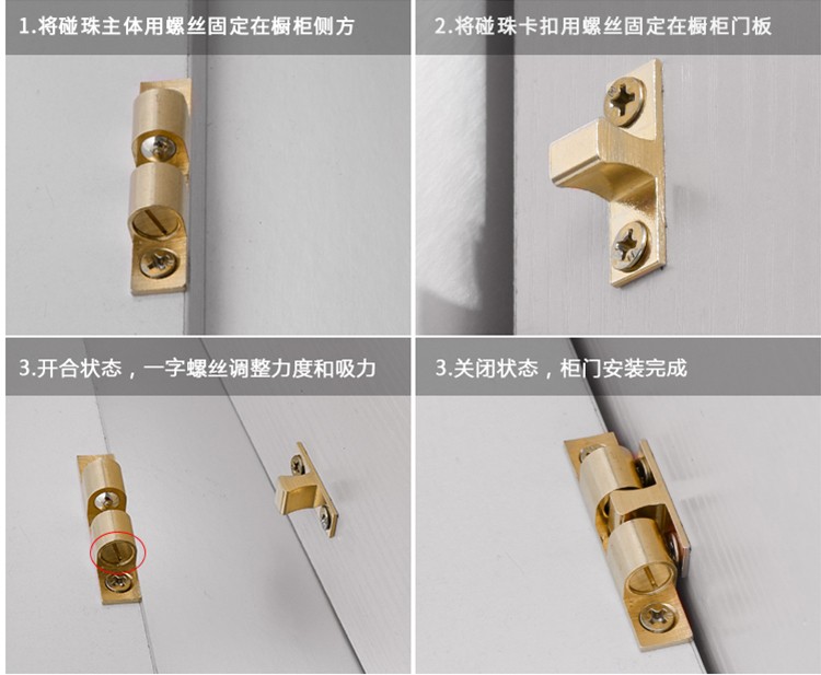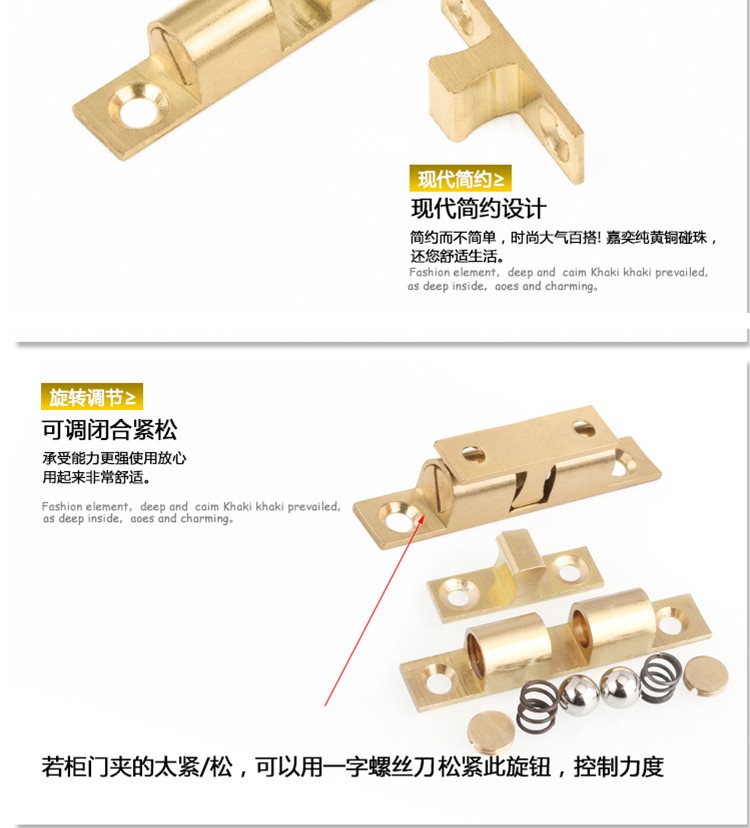 All copper cabinet door, magnetic suction wardrobe, cabinet door, magnetic touch bead buckle type spring bead catch bead cabinet, touch bead lock, open and close the door, touch the length of the door stopper 70MM