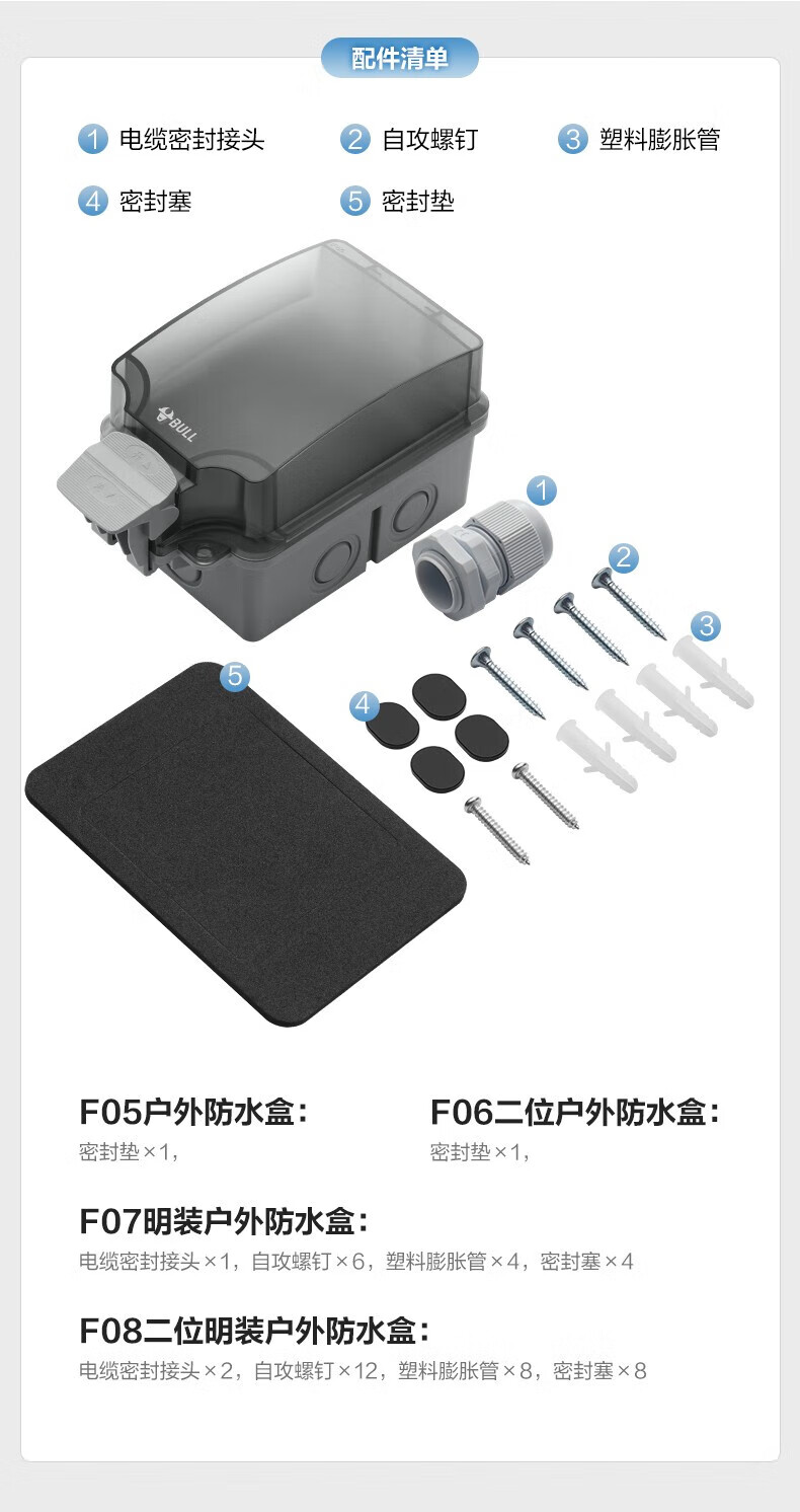 Bull waterproof box bathroom splash box cover 86 type universal waterproof cover universal switch socket panel outdoor transparent waterproof socket waterproof fog cover concealed installation F05 [rainstorm outdoor waterproof] [picture price brand q...