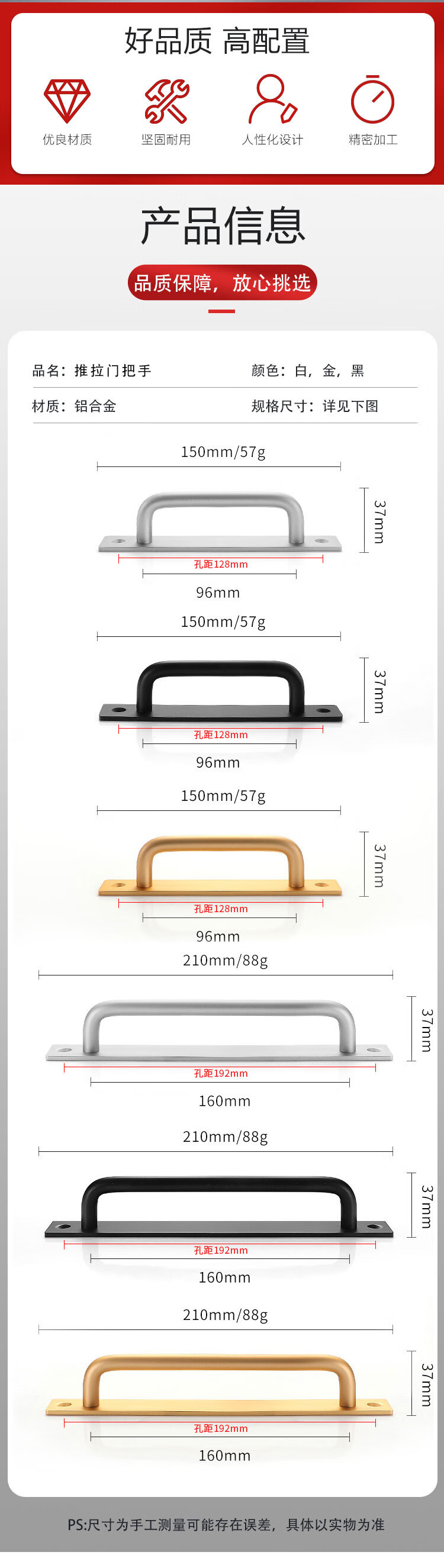 Youmaida Sliding door sliding door handle drawer cabinet door handle black 128mm hole pitch/150mm long Y27