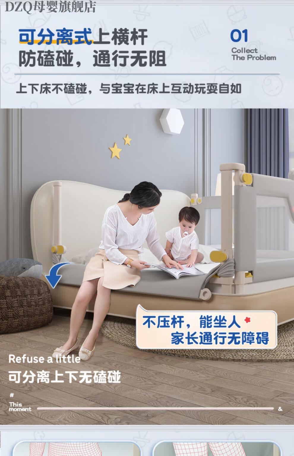 DZQbed rail baby anti fall and anti fall bed rail baby crib upper baffle, extra wide bed edge, universal height, three sides without punching, top configuration, love bear [U-shaped base+1.8m bed head [1.8m+2.0m+2.0m] [Image price brand]